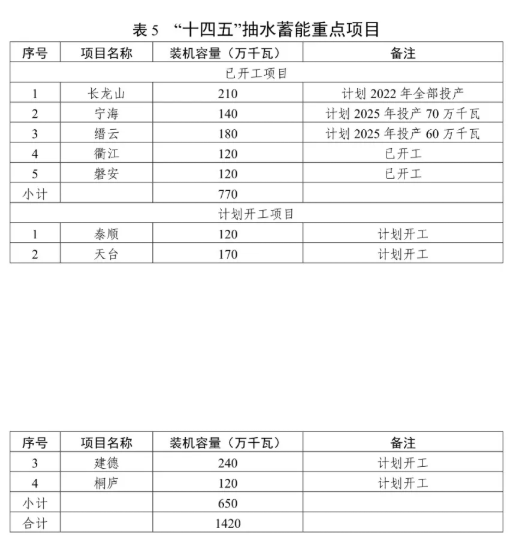 有序發(fā)展抽水蓄能電站。積極推進(jìn)長(zhǎng)龍山、寧海、縉云、衢江、磐安等抽水蓄能開工項(xiàng)目的建設(shè),穩(wěn)妥開展泰順、天臺(tái)等抽水蓄能電站項(xiàng)目前期工作,適時(shí)啟動(dòng)建德、桐廬站點(diǎn)的前期工作。結(jié)合現(xiàn)有站點(diǎn),合理規(guī)劃布局,積極推動(dòng)新一輪抽水蓄能電站選點(diǎn)工作。加強(qiáng)抽水蓄能電站建設(shè)管理體制、電價(jià)機(jī)制等研究。"十四五"期間,全省抽水蓄能電站力爭(zhēng)新增裝機(jī)容量 340 萬千瓦,累計(jì)裝機(jī)容量達(dá)到798 萬千瓦。